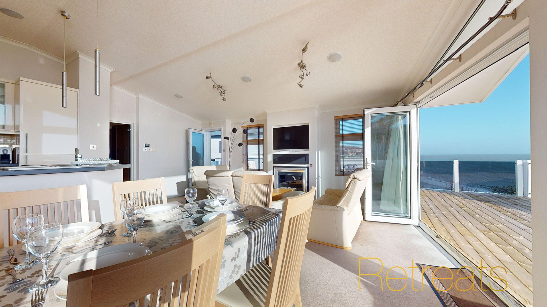 Arguably one of the most desirable spots in Abersoch is E16, a beach front chalet on the well known holiday park 'The Warren'. Enjoy breakfast, lunch and dinner with the best seat on the Llyn Peninsula. E16 is a perfect family Retreat, enjoy use of the first-class leisure facilities; whilst the children enjoy the climbing wall and video gaming hub, parents can make the most of the exclusive restaurant, bar or technogym. Boasting multiple swimming pools, tennis courts and an onsite spa, come rain or shine, you won't be short of things to do at The Warren.