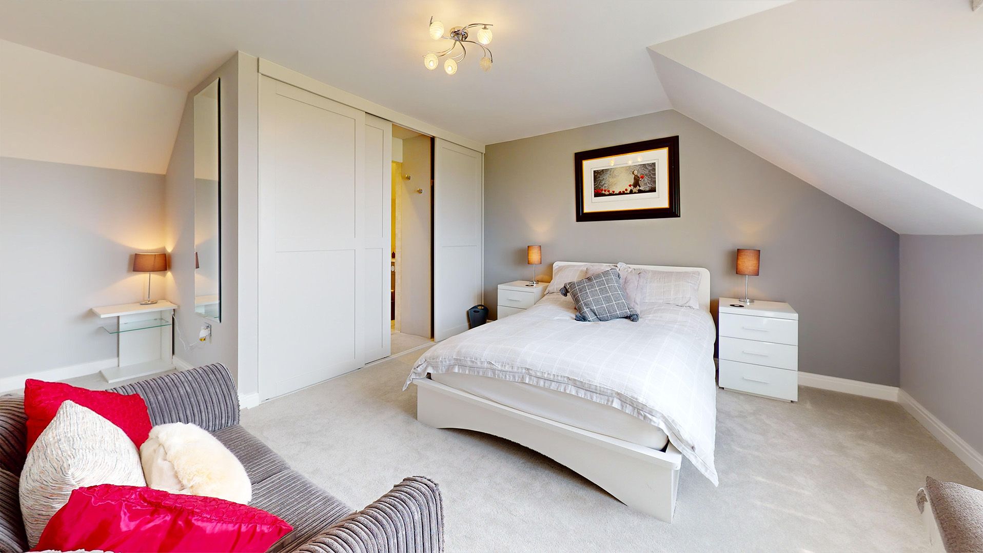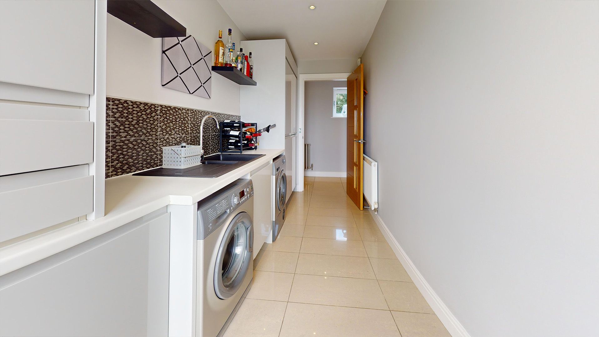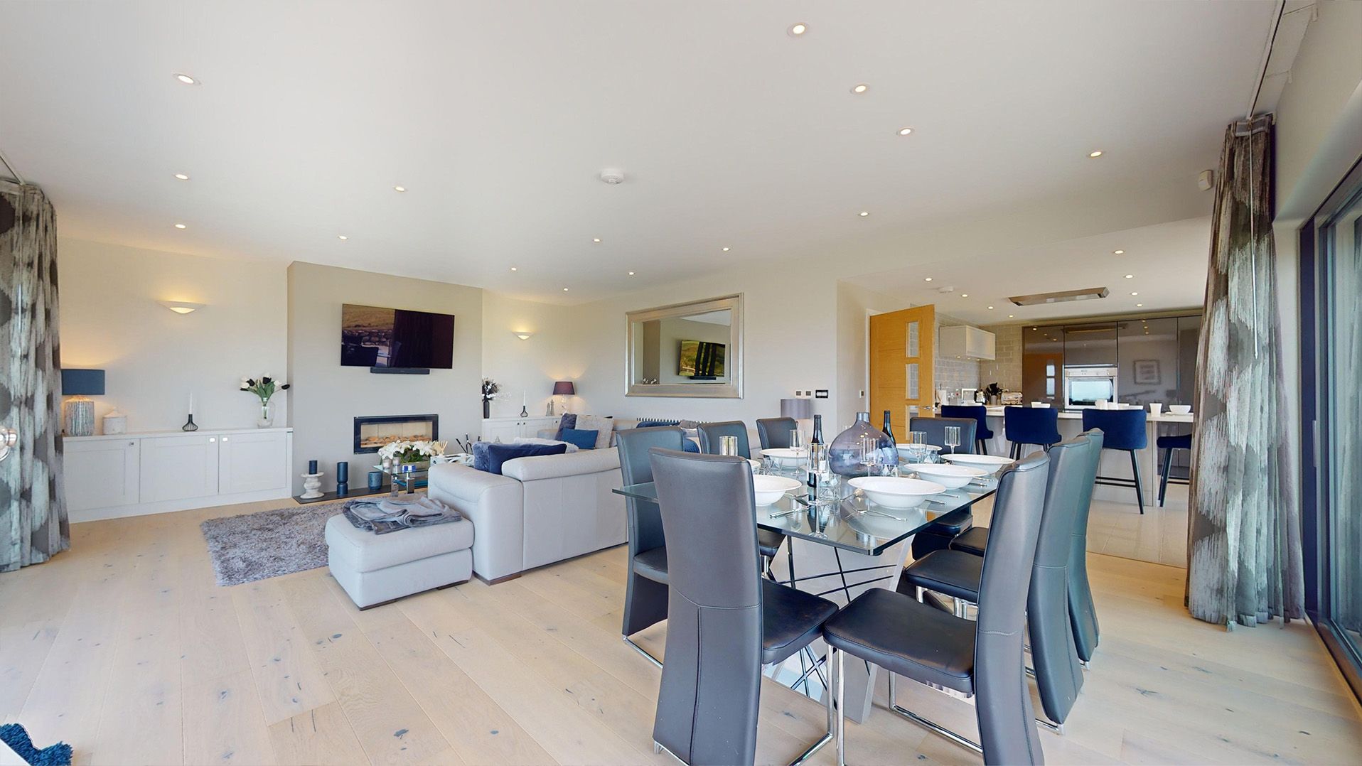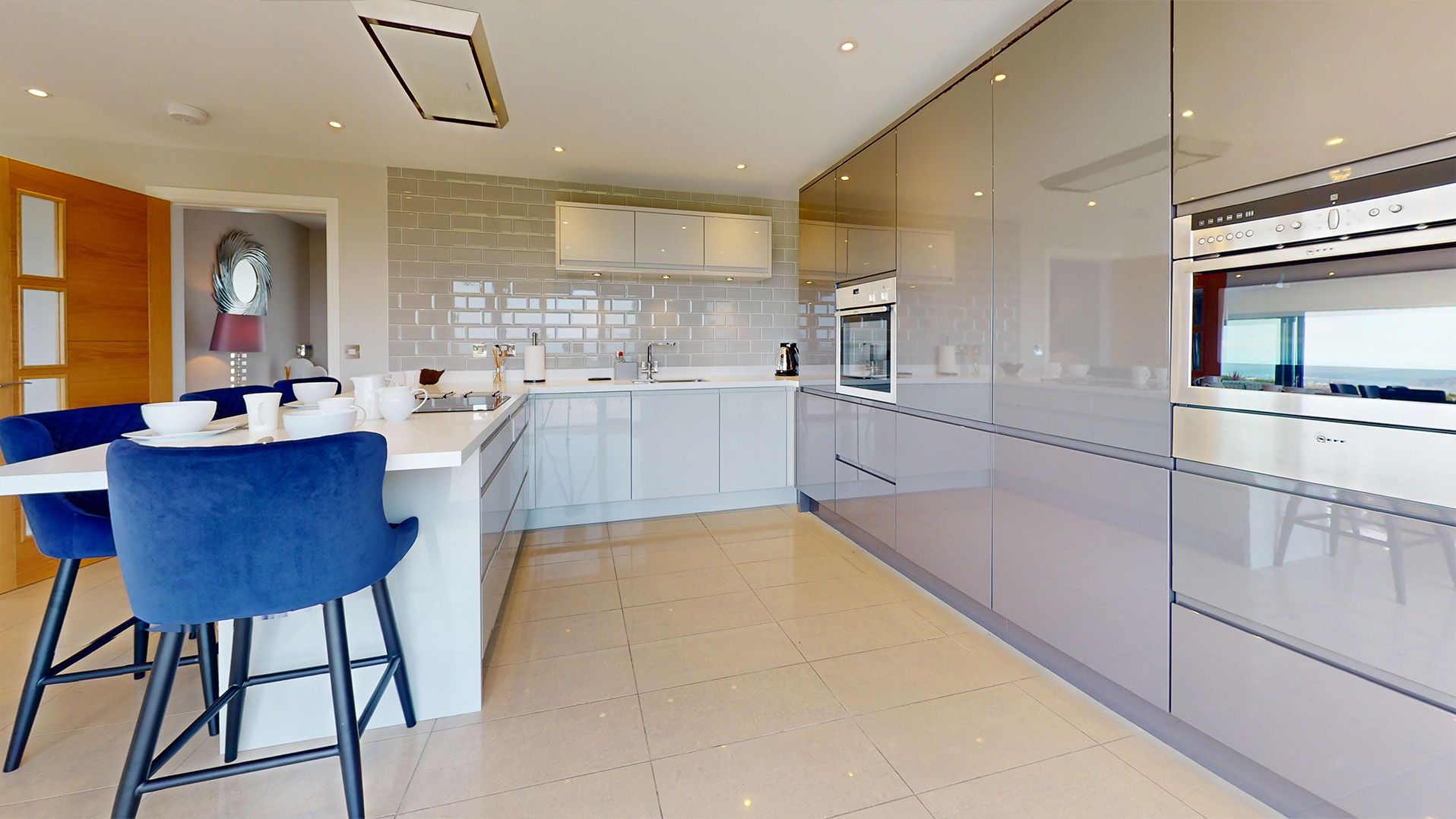 An architecturally stunning modern property. The property has been designed with an open plan living area and kitchen upstairs with two balconies.